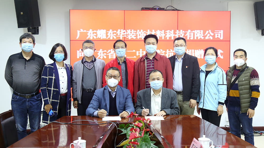 2020年3月6日下午,广东开云网页版装饰材料科技有限公司向广东省第二中医院捐赠一批“红棉花”牌抗菌防霉饰面刨花板定制的家具,用于改善医院呼吸科医护人员及病人的环境,共同抗击新肺疫情,捐赠仪式在广东省第二中医院举行。